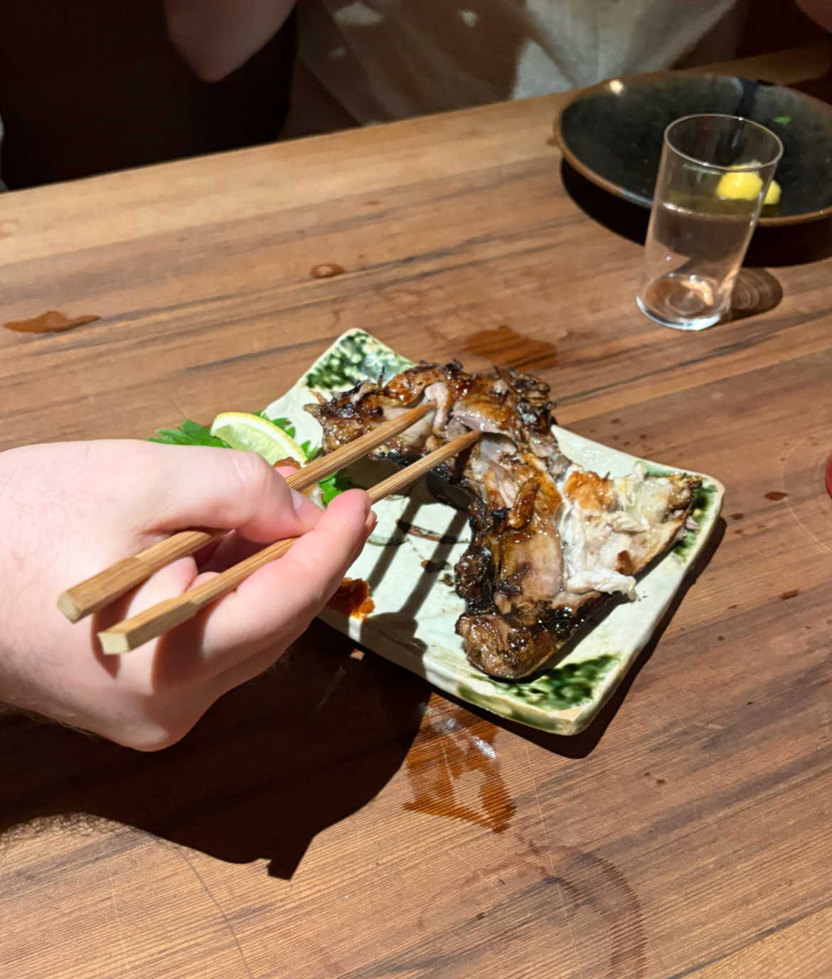 I may be biased because I used to work there (did you know I used to wrk at Rintaro?). But it may be the best damned restaurant in San Francisco, and it is only getting better. See this fish collar? It’s from local, wild-caught albacore tuna. It’s grilled over charcoal alongside a hundred other yakitori orders and simply glazed with tare (a sauce of shoyu, mirin, and sugar; I know because I needed to know since I worked there). What at first seems like a precious expression of a rare ingredient quickly becomes a shred of unctuous meat – without a hint of fishy-ness mind you. This is what a rugged fisherman would prepare for himself after coming home from a long day at sea, perhaps with a can of Asahi, not a glass. Of course, the Asahi at Rintaro does come in a glass. Did you know that Asahi dispensing machines come with a nozzle that dispenses beer and a seperate nozzle that dispenses foam? I know because I used to work there. By “there” of course I mean Rintaro. I used to work at Rintaro.